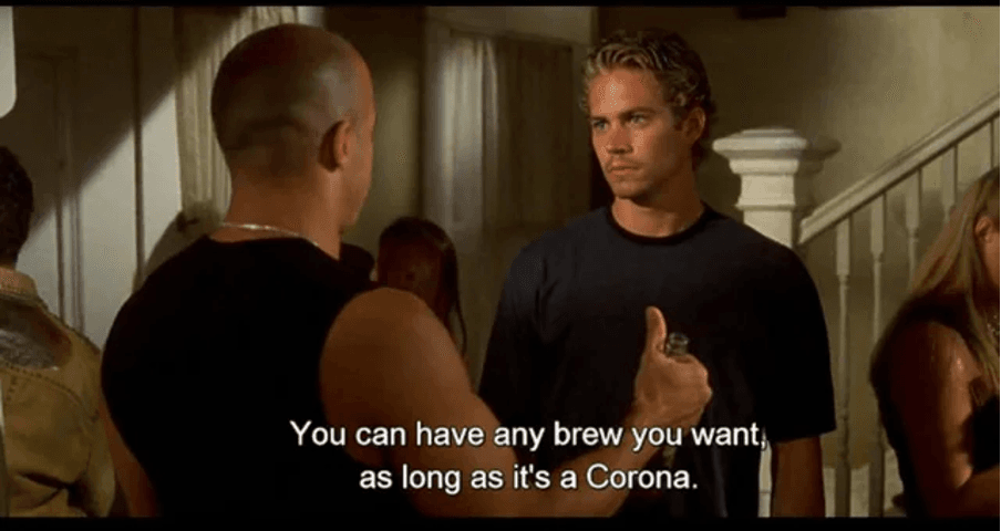 Niet elke samenwerking kost miljoenen. De Fast & Furious-franchise zit tjokvol Corona-flesjes, zonder dat er ooit een cent voor is betaald. Voor de scenarist paste Corona gewoon té goed bij de karakters. Inmiddels is het bier onmisbaar in het DNA van de franchise. Zoals de scenarist van de latere films zegt: